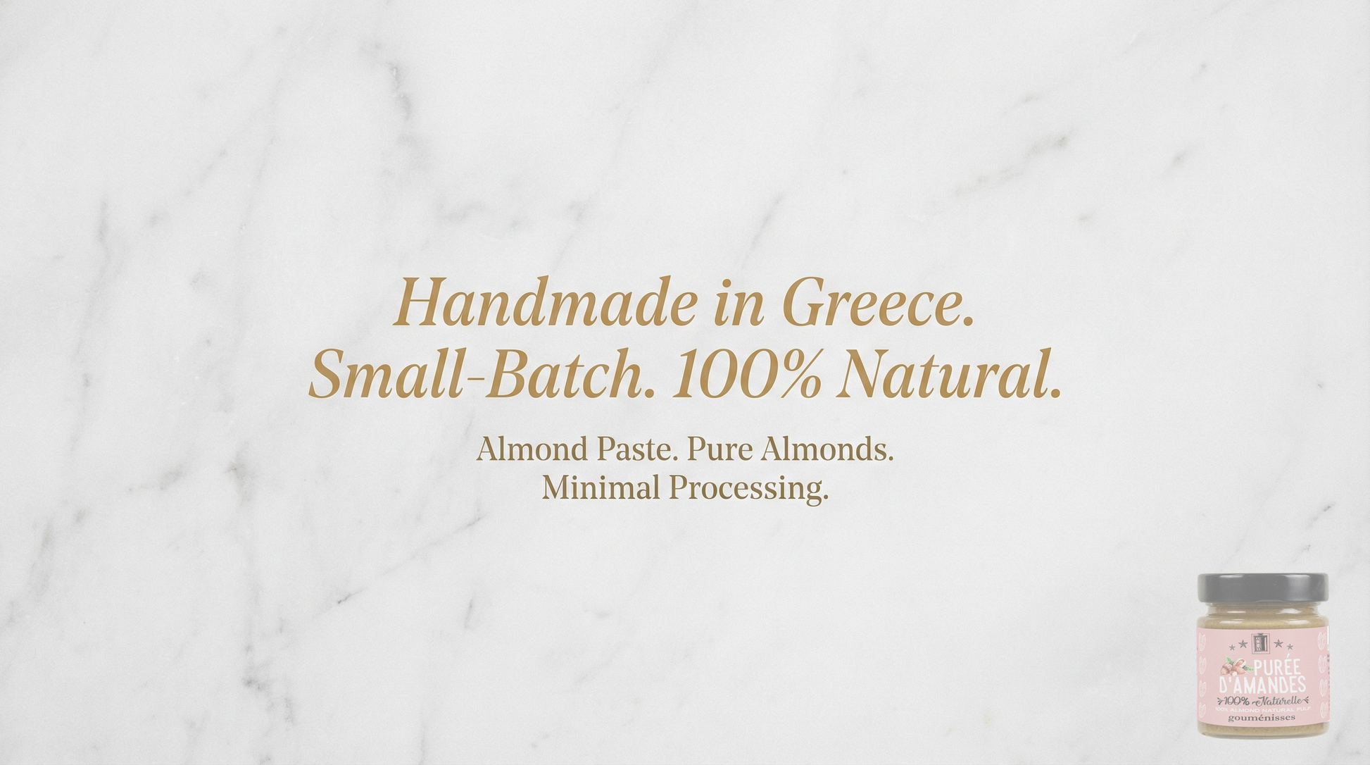 Voici l'amande dans sa plus pure expression. Notre pâte d'amande est composée d'un seul et unique ingrédient : des amandes grecques de première qualité, légèrement torréfiées puis broyées à la meule de pierre pendant des heures. Le résultat est une pâte d'une finesse incroyable, au goût pur et intense. Non sucrée, elle est la toile blanche de toutes vos envies culinaires, un concentré de bienfaits et de saveur authentique.